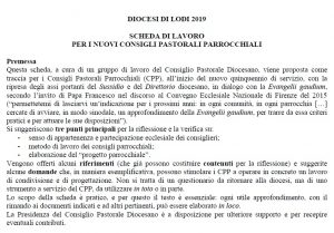 Scheda di lavoro per i nuovi Consigli Parrocchiali