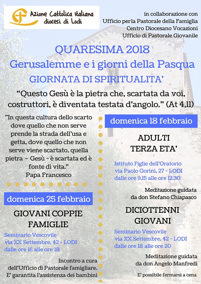 “In questa cultura dello scarto dove quello che non serve prende la strada dell’usa e getta, dove quello che non serve viene scartato, quella pietra – Gesù – è scartata ed è fonte di vita.”