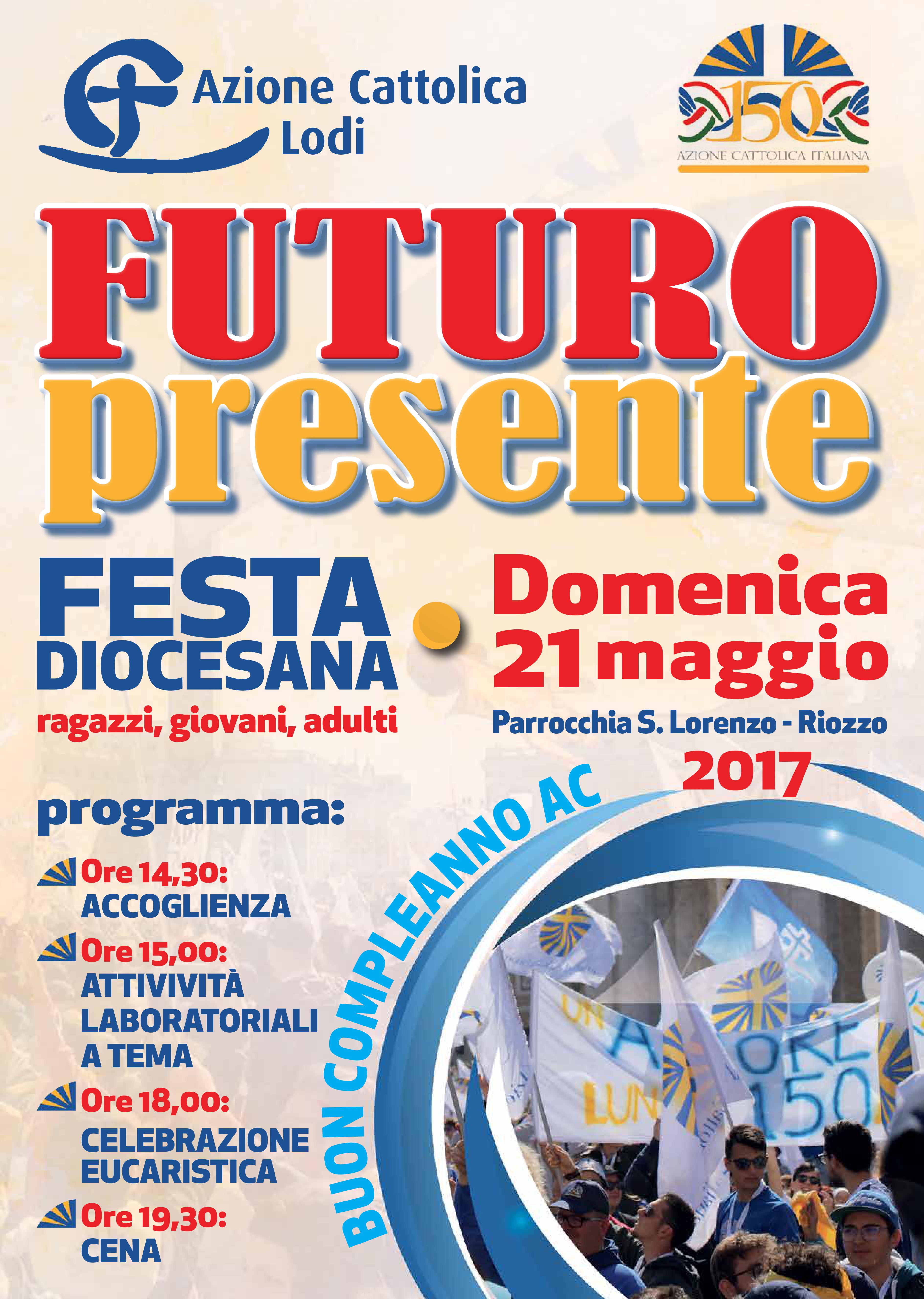 L’Azione Cattolica Lodi organizza per Domenica 21 maggio la Festa Diocesana 2017 che per i 150 anni dell’AC Italiana ha scelto il titolo emblematico: “FUTURO presente”.