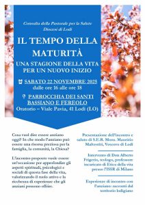 Verranno poi presentate alcune esperienze e testimonianze dalle strutture del nostro territorio che ospitano persone anziane. L’evento si svolgerà presso l’Auditorium dell’Oratorio della Parrocchia dei S.S. Bassiano e Fereolo, in viale Pavia 41 a Lodi ed intende promuovere una visione che consideri la vecchiaia non come una inesorabile condizione da sopportare ma come una vera e propria risorsa per la Chiesa e per la società.