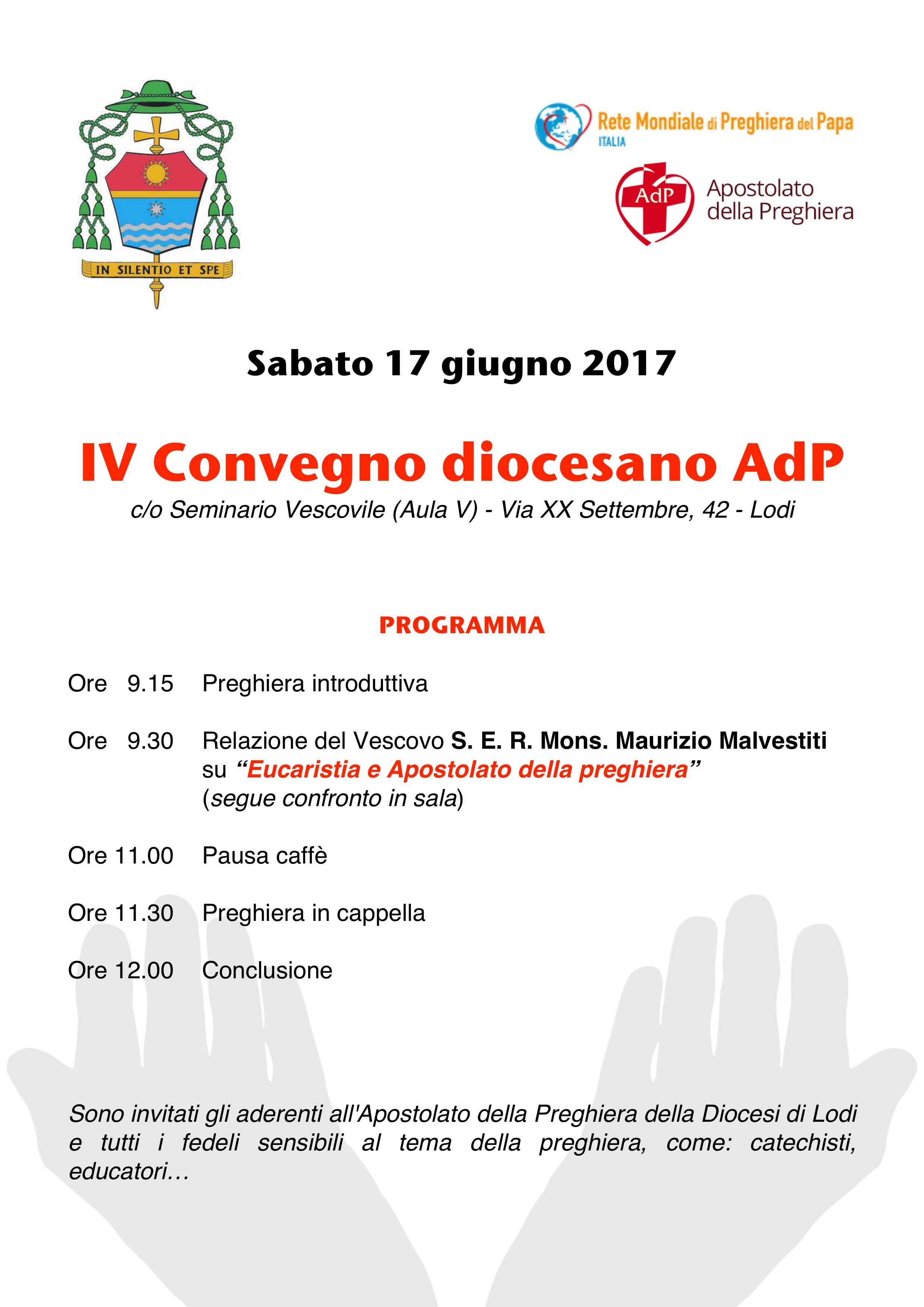 E’ per Sabato 17 giugno a Lodi, presso il Seminario Vescovile, l’appuntamento degli aderenti all’Apostolato della Preghiera in Diocesi per il loro IV Convegno.