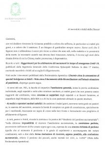 Visti anche i documenti pubblicati dalla Penitenzieria Apostolica (Decreto circa la concessione di speciali Indulgenze ai fedeli e Nota circa il Sacramento della Riconciliazione nell’attuale situazione di pandemia), dispongo quanto segue.