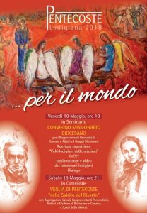Sabato 19 maggio 2018, vigilia di Pentecoste, in Cattedrale alle ore 21 avrà luogo la Celebrazione Eucaristica presieduta dal Vescovo Maurizio e concelebrata da Mons. Valter Dario Maggi, Vescovo di Ibarra (Ecuador), la cui famiglia risiede a Ospedaletto Lodigiano, e da alcuni missionari lodigiani insieme ai sacerdoti che lo desiderano.