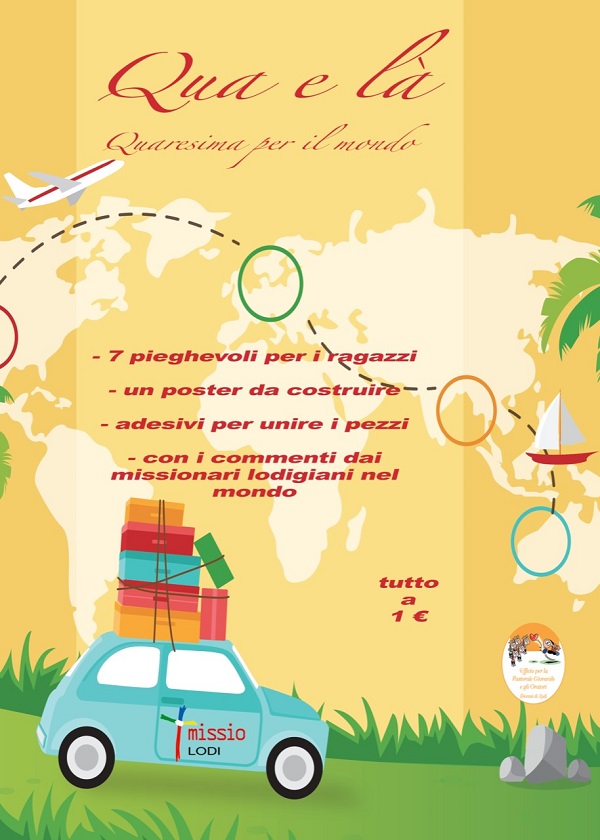 Si tratta di sette pieghevoli ideati in collaborazione con l’Ufficio di Pastorale Giovanile della nostra diocesi. I commenti ai frammenti di Vangelo sono stati scritti per noi da alcuni missionari lodigiani, che ci aiutano ad orientarci nel viaggio che in questi quaranta giorni ci porta alla Pasqua.