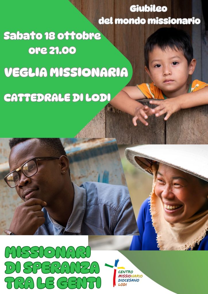 9 Ottobre 2025Missionari di speranza tra le gentiVEGLIA MISSIONARIA 18 OTTOBRE Sabato 18 ottobre VEGLIA MISSIONARIA DIOCESANA Ore 21.00 CATTEDRALE DI LODI Missionari di speranza tra le genti Momento di preghiera alla vigilia della GIORNATA MISSIONARIA condividi su