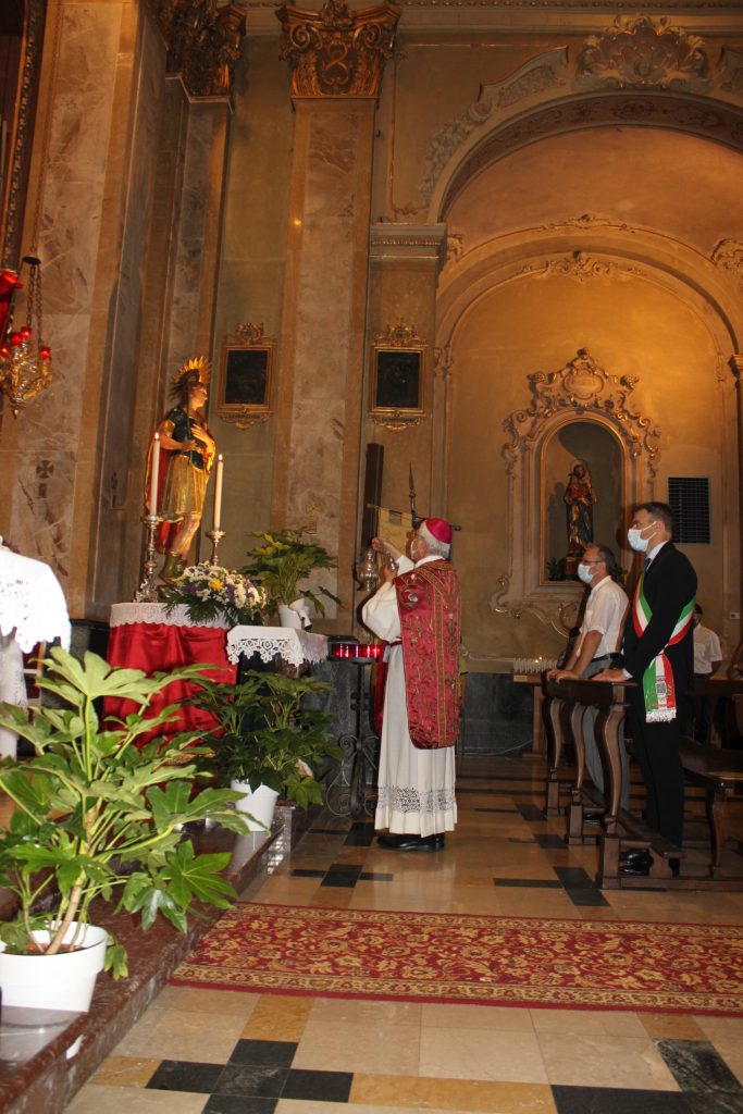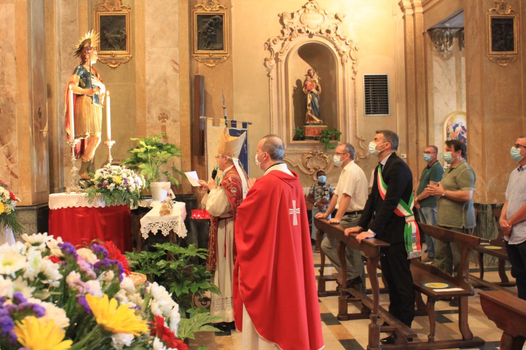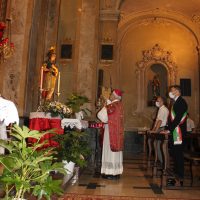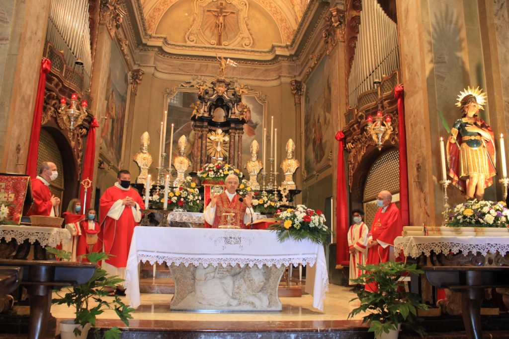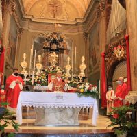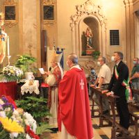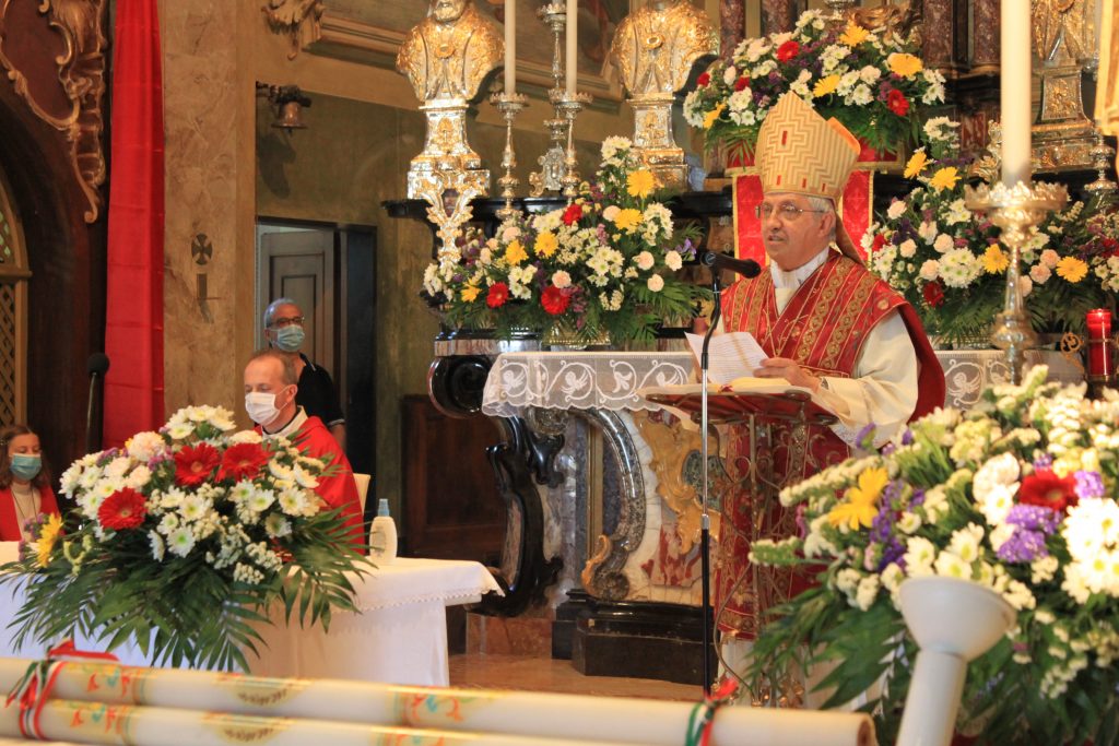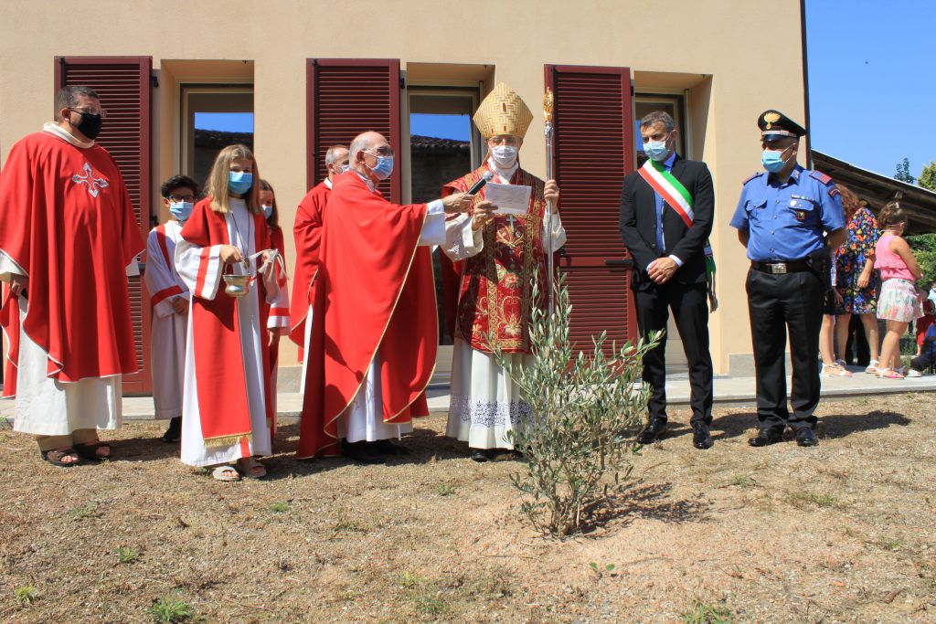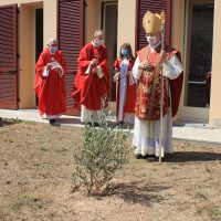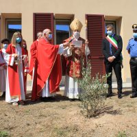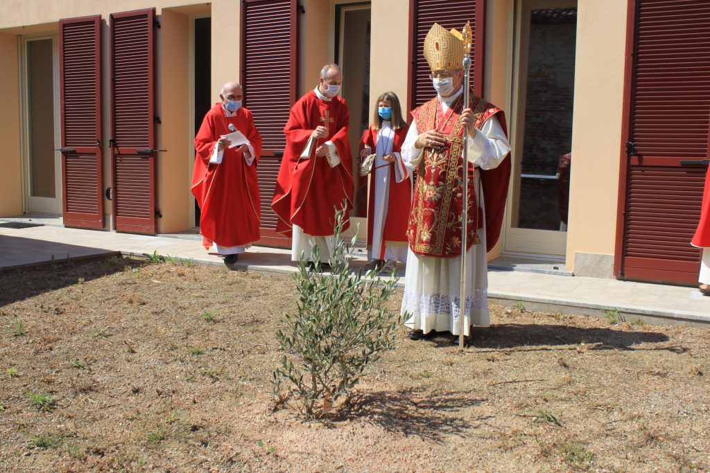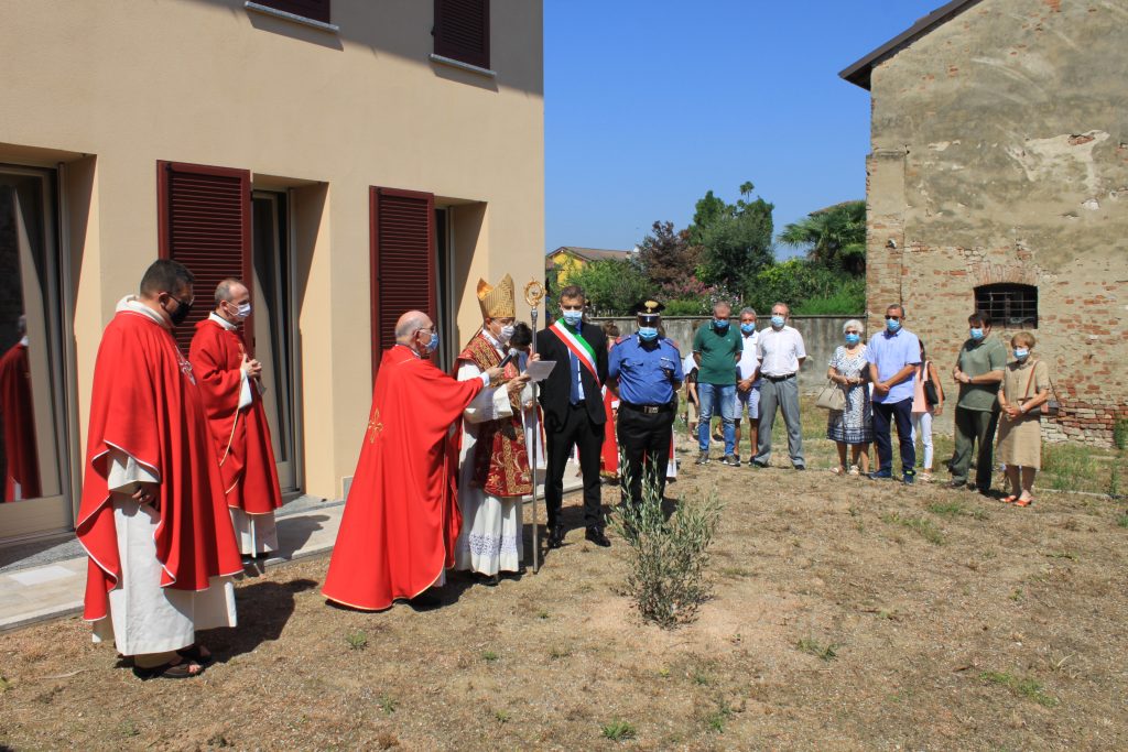 Mons. Vescovo Maurizio Malvestiti ha presieduto la Messa e poi benedetto l'ulivo in ricordo delle vittime del Covid.