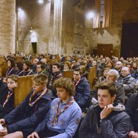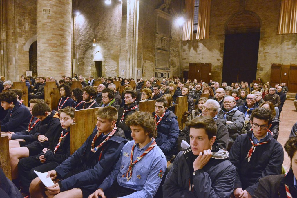 Scout e fedeli in ascolto dell'Omelia del Vescovo
