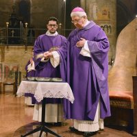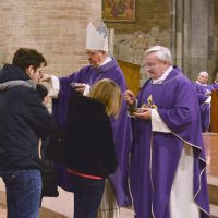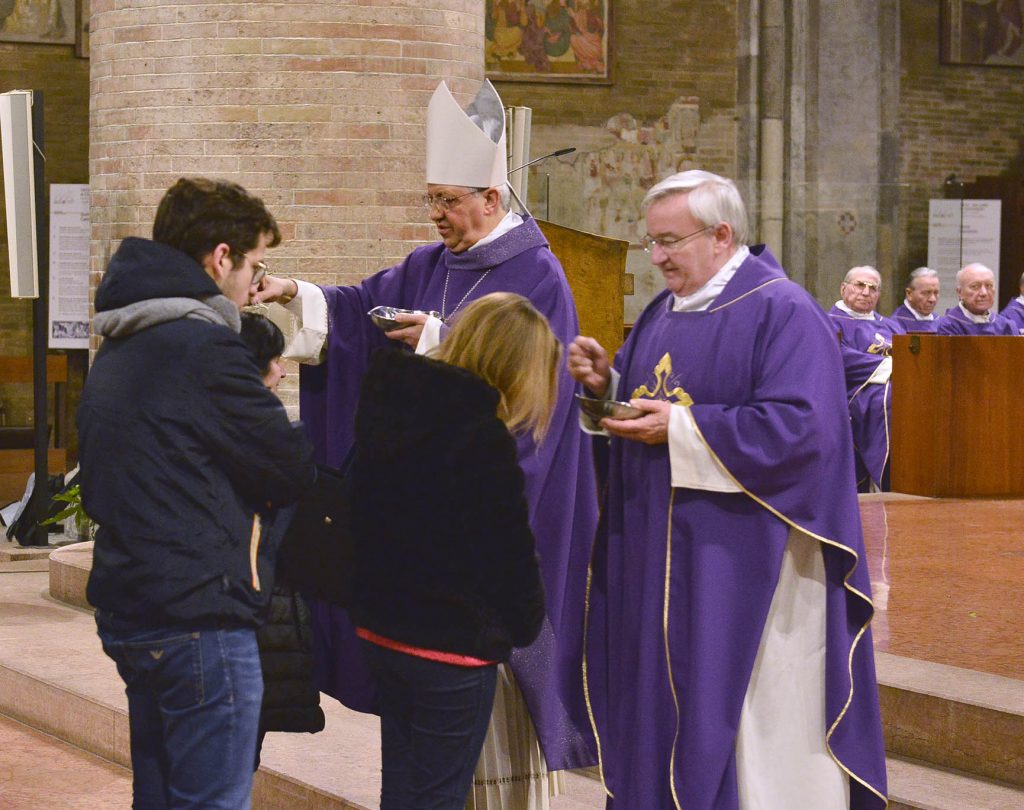 Il Vescovo impone le ceneri ai fedeli insieme al Parroco della Cattedrale, Mons. Badaracco