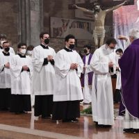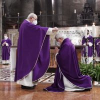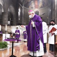 Il vescovo di Lodi mons. Maurizio Malvestiti, con il presidente del capitolo i canonici, il seminario e i fedeli ha concelebrato la Santa Messa con il rito delle Ceneri nel I giorno di Quaresima.