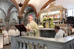 1. Il 4 luglio 1173, a soli cinque anni dall’ingresso in Lodi, sant’Alberto fu chiamato dal Signore e concluse il servizio episcopale nel compianto di tutto il popolo. Lo aveva logorato la dedizione pastorale, particolarmente a favore dei poveri, sull’esempio di san Bassiano, del quale commemoriamo i 1700 anni dalla nascita. Veneriamo l’uno e l’altro, riconoscenti a Dio e ai padri per averne recato le Sante Reliquie in questa cripta a ricordarci il fondamento di ogni chiesa diocesana nell’unica chiesa: Cristo e gli Apostoli. Bassiano e Alberto furono immagine del Pastore Buono e diedero prova di coscienza e responsabilità apostolica tanto da divenire memoria identitaria che tuttora avvicina comunità ecclesiale e civile alla loro eredità, che e’ la carità solidale.