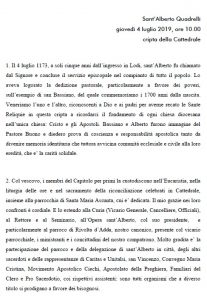 4. La carità della chiesa di Bassiano e Alberto non potrà essere occasionale, bensì organizzata, perseverante e lungimirante, attenta ai vicini (in particolare ai senza lavoro e alle famiglie) e a chi viene da lontano fuggendo la violenza in cerca di sopravvivenza. Senza mai dimenticare il di più che la deve distinguere, ossia il perché della vita da cercare ad ogni costo da chi la esercita e da chi la riceve. E “chi cerca trova” (Lc 11,10). È il “perché” a determinare il “come” si vive. I battezzati l’hanno trovato, anche se talora lo dimenticano. Devono gridarlo, specie ai giovani: è il Figlio di Dio e dell’Uomo, da amare perdutamente avendo Egli – per primo e gratuitamente – dato la vita per noi. Solo in Cristo è possibile sacrificarci nella croce della fedeltà, del perdono ricevuto da Dio e offerto, dell’abnegazione, della solidarietà. L’altro non sarà più ignorato, rifiutato, temuto, disprezzato ma semplicemente amato. Bassiano ed Alberto furono testimoni di questo “vivente perché”, nel quale abbiamo “il centuplo quaggiù e la vita eterna” (cfr Mc 10, 28-31).