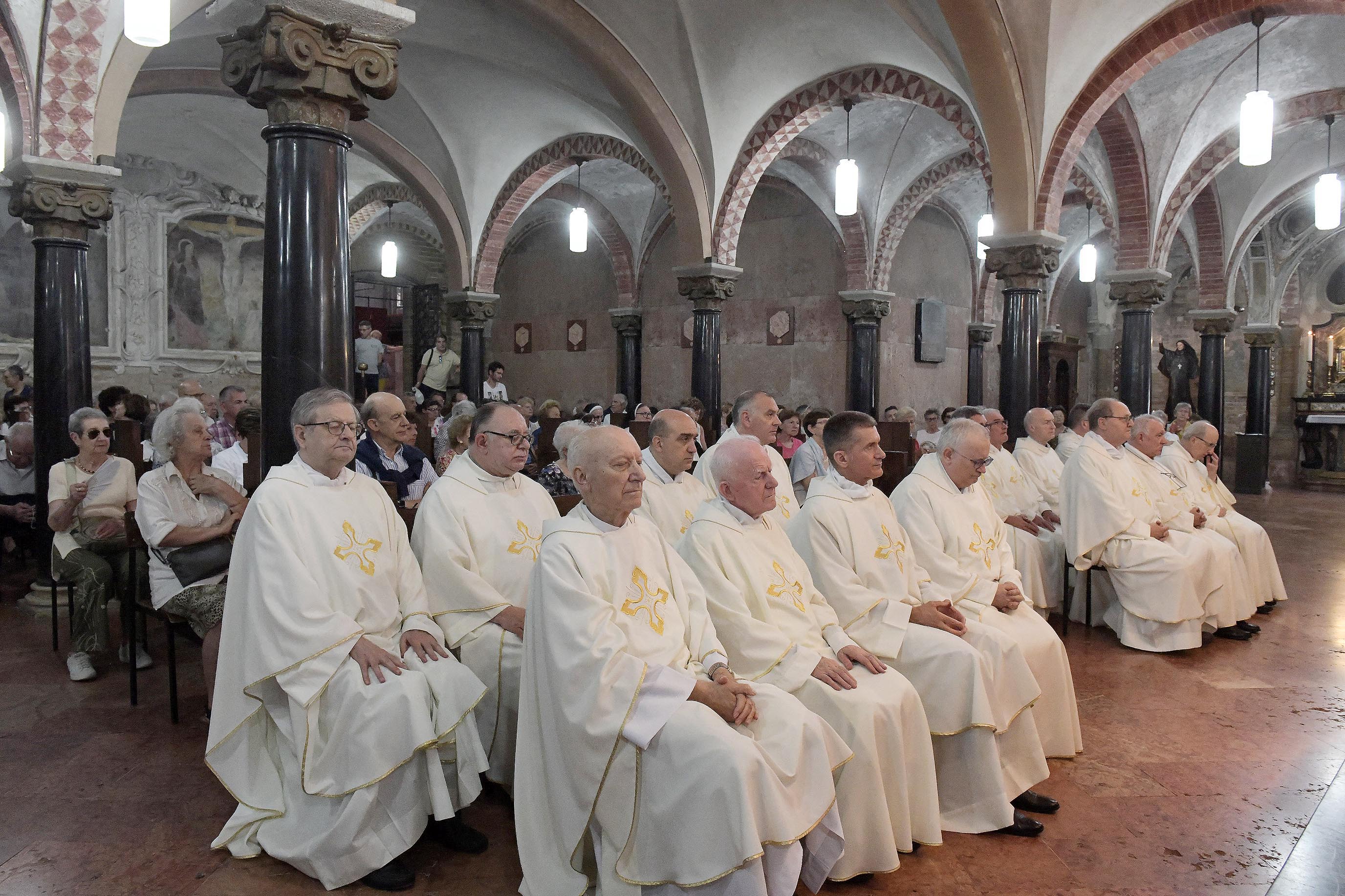 1. Il 4 luglio 1173, a soli cinque anni dall’ingresso in Lodi, sant’Alberto fu chiamato dal Signore e concluse il servizio episcopale nel compianto di tutto il popolo. Lo aveva logorato la dedizione pastorale, particolarmente a favore dei poveri, sull’esempio di san Bassiano, del quale commemoriamo i 1700 anni dalla nascita. Veneriamo l’uno e l’altro, riconoscenti a Dio e ai padri per averne recato le Sante Reliquie in questa cripta a ricordarci il fondamento di ogni chiesa diocesana nell’unica chiesa: Cristo e gli Apostoli. Bassiano e Alberto furono immagine del Pastore Buono e diedero prova di coscienza e responsabilità apostolica tanto da divenire memoria identitaria che tuttora avvicina comunità ecclesiale e civile alla loro eredità, che e’ la carità solidale.