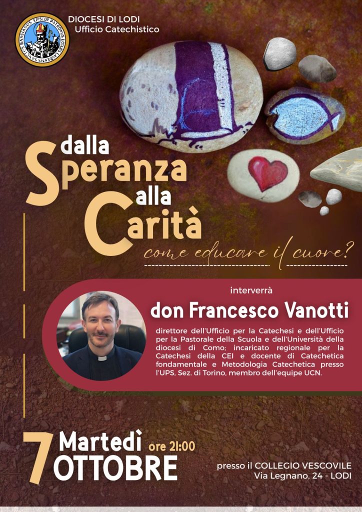 24 Settembre 20258 Ottobre 2025Come educare il cuoredalla Speranza alla Caritàincontro di formazione con don Francesco Vanotti Incontro aperto a tutti i catechisti. Un momento di riflessione, approfondimento e condivisione dalla speranza alla carità. Interverrà don Francesco Vanotti della Diocesi di Como. condividi su