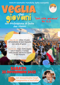 Lieti nella speranza è il titolo scelto per la 38esima Giornata mondiale della gioventù, che quest’anno si celebra nelle parrocchie domenica 26 novembre, la domenica di Cristo Re. Nella nostra diocesi la Veglia dedicata ai giovani e presieduta dal vescovo Maurizio, avrà luogo sabato 25 novembre nella chiesa del Sacro Cuore (viale Europa), parrocchia e quartiere di Robadello – San Fereolo in Lodi.