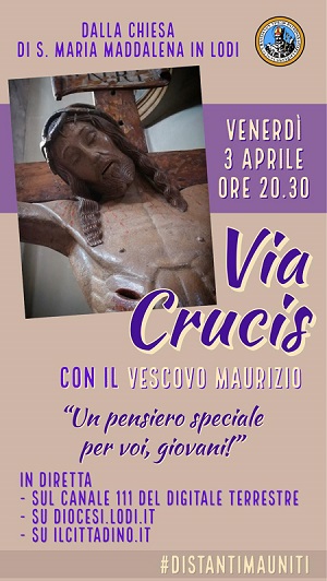 Venerdì 3 aprile alle ore 20.30, a Lodi, nella Chiesa parrocchiale di Santa Maria Maddalena, il Vescovo Maurizio presiederà la Via Crucis (senza fedeli ma per tutti i fedeli) e venererà il Santissimo Crocifisso a nome di tutti i Lodigiani.