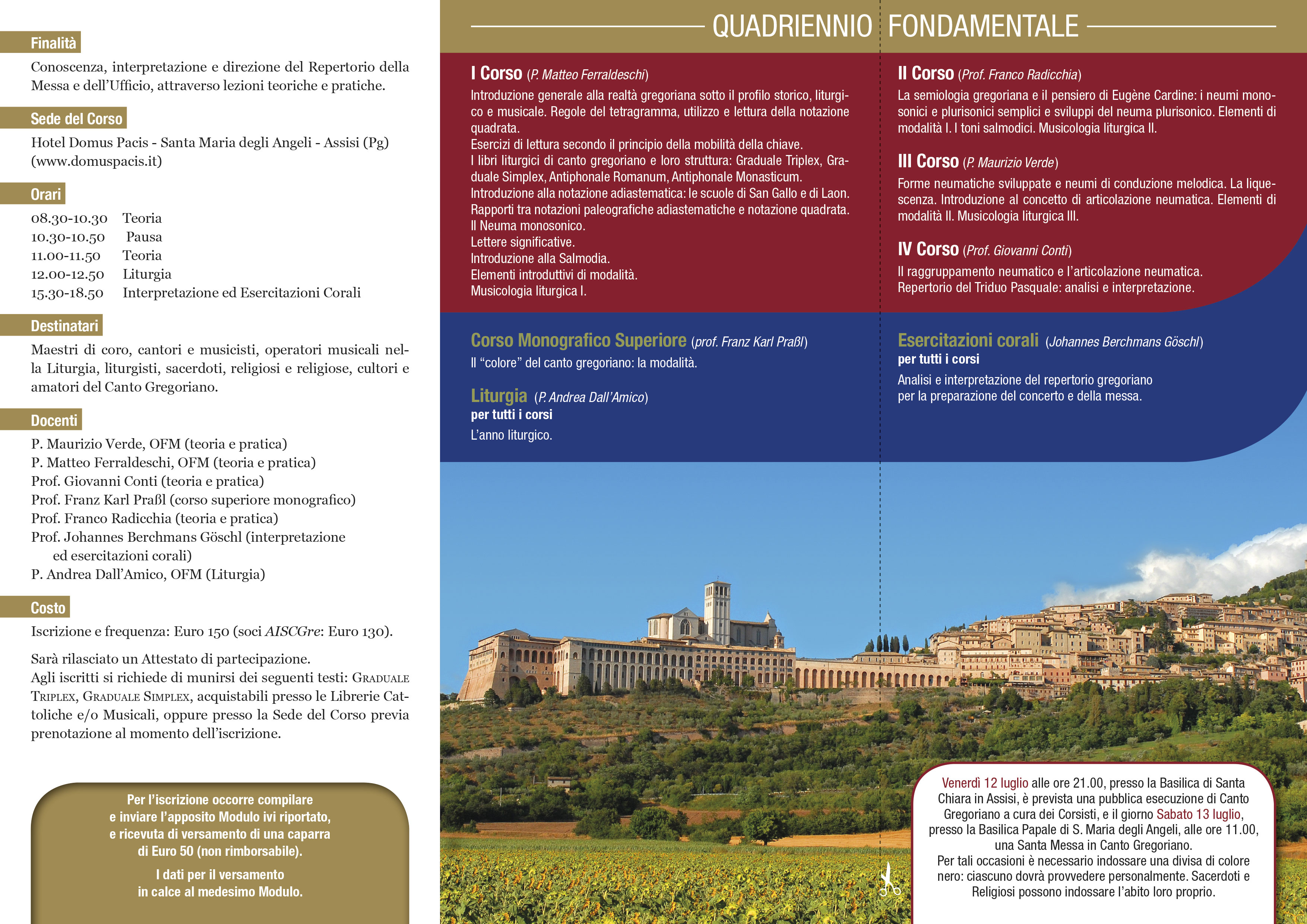 Il corso si terrà presso il Centro Congressi e Hotel Domus Pacis di Santa Maria degli Angeli, all’ombra della Porziuncola.
