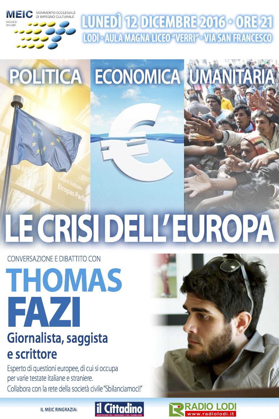 Relatore è Thomas Fazi: giornalista, saggista e scrittore; esperto di questioni europee di cui si occupa per varie testate italiane e straniere.